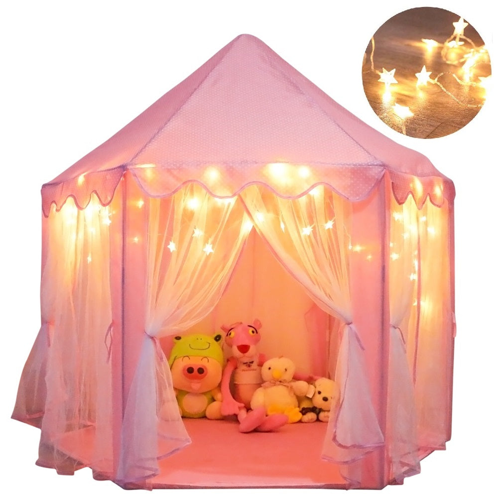 ORIAN Princess Castle Playhouse Tent for Girls with LED Star Lights – Indoor & Outdoor Large Kids Play Tent for Imaginative Games – ASTM Certified, 230 Polyester Taffeta. Pink 55"x53".
